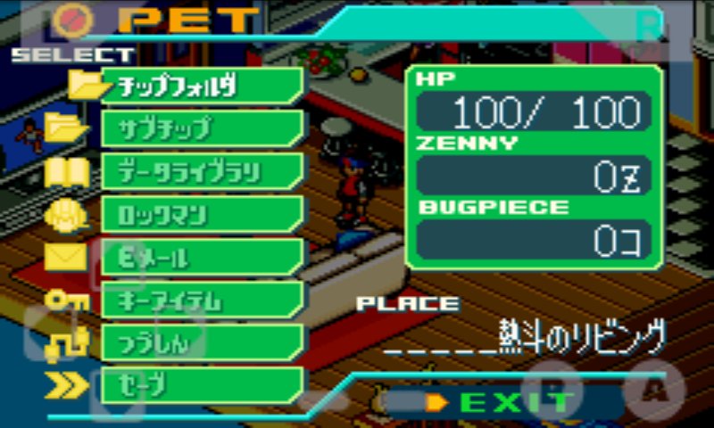 GalaxyS2で動作させた「ロックマンEXE6」のスクリーンショット